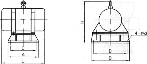 防閉塞裝置由振動電機、底座兩部分組成。振動電機和底座由螺栓緊密地固定為一體,由于底座堅固地安裝在料倉壁上,這樣就構成了單質點定向強迫振動系統。