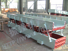2. SZF型慣性振動輸送機采用兩臺振動電機作為激振動源,運用自同步原理,兩臺振動電機反向轉動,使輸送機底部平衡架產生往復振動,經過主振簧與導向板簧的作用,帶動上部輸送槽振動,從而達到輸送物料的目的。該機是一種通用輸送機械,除用于水泥行業外,還可用于冶金、礦山、化工、電力等行業,是一種理想的新型輸送設備。
