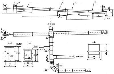 空氣斜槽輸送機由數個薄鋼制成的槽子聯接組成,并沿其輸送方向布置成一定的斜度。空氣輸送斜槽槽體沿著輸送方向安裝成向下傾斜4%~6%的斜度。